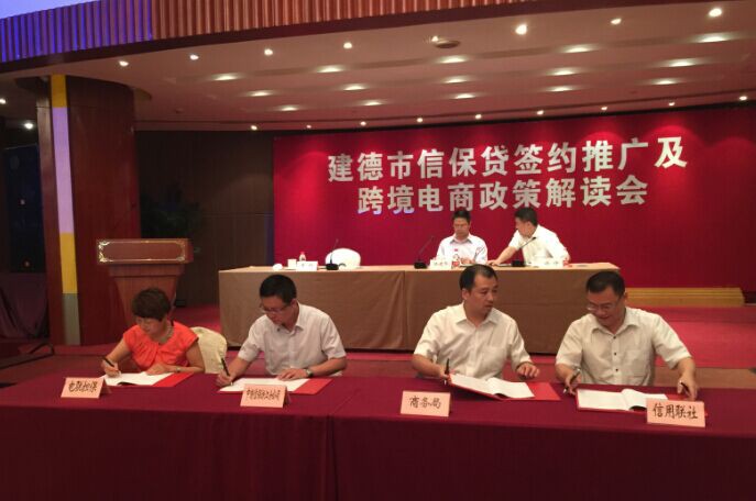 8月5日,由建德市商務局牽頭,在建德市半島凱豪大酒店召開了建德市“信保貸”簽約推廣及跨境電商政策解讀會,中國出口信用保險公司、市農村信用聯社、浙江電聯擔保有限公司等信保貸業務的主要參與機構,中國(杭州)跨境電子商務綜合試驗辦公室、阿里巴巴以及部分出口貿易型企業等受邀參加會議。副市長徐建華、市府辦主任徐諍、市商務局局長章明出席會議并講話。徐副市長指出,我市經濟在“三期”疊加的壓力下面臨著嚴峻的挑戰,信保貸業務的簽約給我市出口貿易型企業提供了極大的融資便利,對促進出口企業的發展有著重要意義。同時要求出口企業提振信心、加強協作、穩健發展。